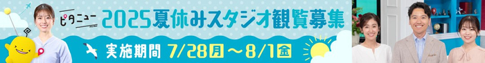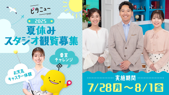 広島ホームテレビ(本社:広島市中区)では今年も、小学生のみなさんを対象に、『ピタニュー』(月~金 夕方4時40分から放送)のスタジオ観覧イベントを開催いたします。