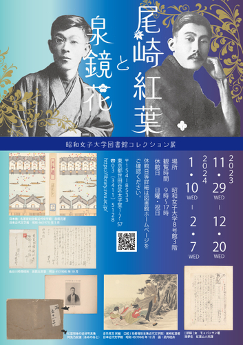 昭和女子大学(学長 金尾朗:東京都世田谷区)図書館は、所蔵品から精選したコレクション展『尾崎紅葉と泉鏡花』を2024年2月7日まで開催しています。