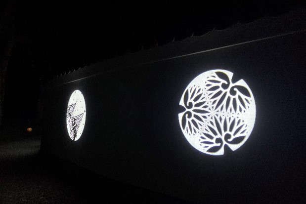 松原から内庭へと向かう園路の白壁に様々なデザインが浮かび上がります。