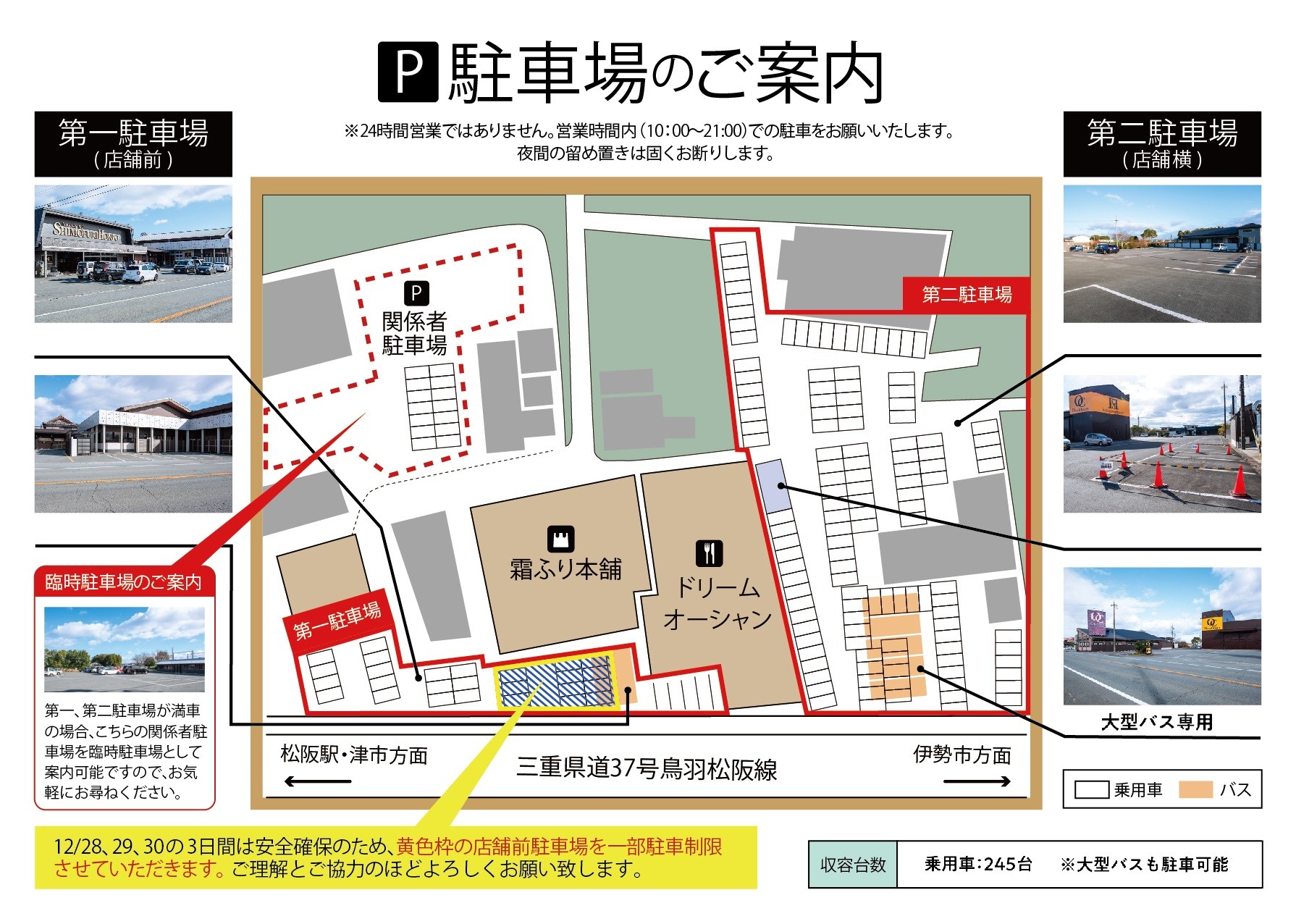駐車場 :店舗の裏側とDreamオーシャン東側にもございます。