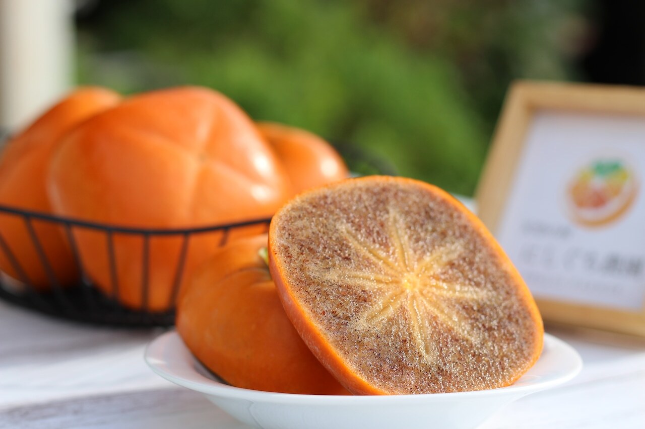 今回の冬限定フレーバーの中でも注目は、断面が星空のように黒く輝く“紀の川柿”を使ったバターサンド。和歌山県紀の川市の山間部・標高600mに位置する「天空の村」で栽培され、樹上で渋が抜ける独自の熟成によって、濃厚な甘さとシャキッとした食感を併せ持つ希少な柿です。