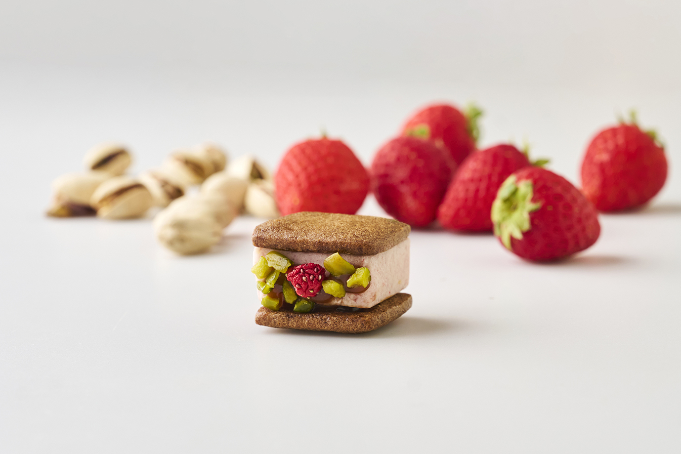寒い季節にいっそう甘みを増す苺を主役に、ほろ苦いキャラメルソースとピスタチオの香ばしさを組み合わせた、冬ならではのリッチなスイーツ。苺のフレッシュな酸味がバタークリームに溶け込み、後味は軽やかでありながら深い余韻が楽しめます。