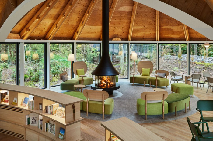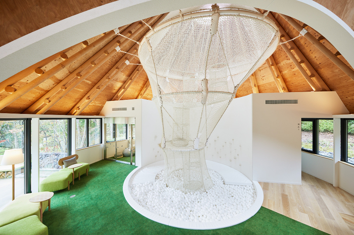 「クライン ダイサム アーキテクツ(KDa)」がデザイン・建築を手掛けた「POKO POKO」は、星野リゾート リゾナーレ那須内にあるアクティビティ施設で、3つの円錐形の屋根が重なり合う大屋根が印象的な建築デザインの建物です。室内には高さ6.5mのネット遊具とボールプールからなる「プレイエリア」。冬には暖炉に火が灯り大人も子どももくつろげる「Books&Cafe」。そして、建物中央には本格的な専用の石窯を備えたキッチンがあり、石窯ピッツァづくりなどのアクティビティも楽しめます。