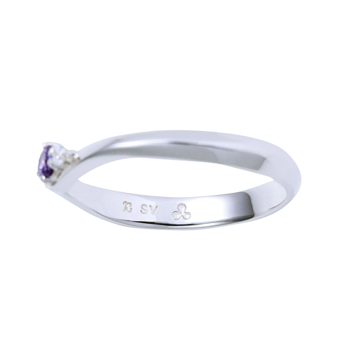 V字フォルムにイメージカラーストーンをセットしたシンプルなデザイン。