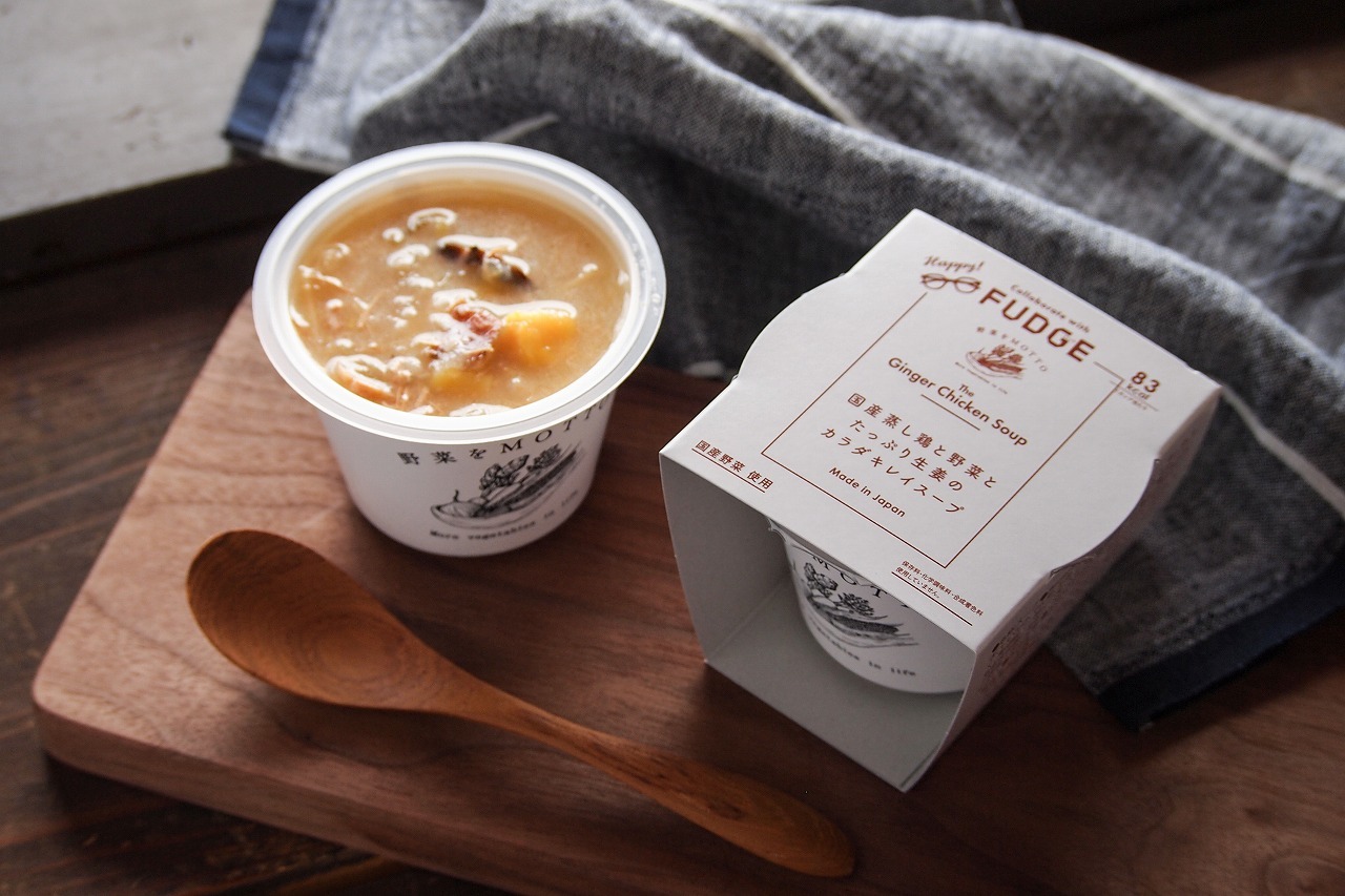 モンマルシェ株式会社が運営する国産野菜フードブランド【野菜をMOTTO】は、人気のベジMOTTOシリーズよりファッションマガジンFUDGE(三栄)とコラボレーションした限定フレーバーを販売いたします。ヘルシーな蒸し鶏を使用しさっぱりとした味わいに仕上げたスープは細切り生姜がたっぷり入ってこれからの季節に体を内側から温めてくれます。もち麦のぷちぷちした食感にさつまいもの甘みを感じられ1杯で大満足のスープです。さらにブラックペッパーのキリリとした辛みがアクセントに。食べる物まで手を抜かないオトナ女子にぜひ食べてほしい特別なスープが出来上がりました。