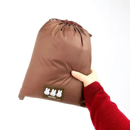 収納袋は落ち着いたブラウンカラーを採用。ミッフィーのワンポイントがさりげなく可愛いです。