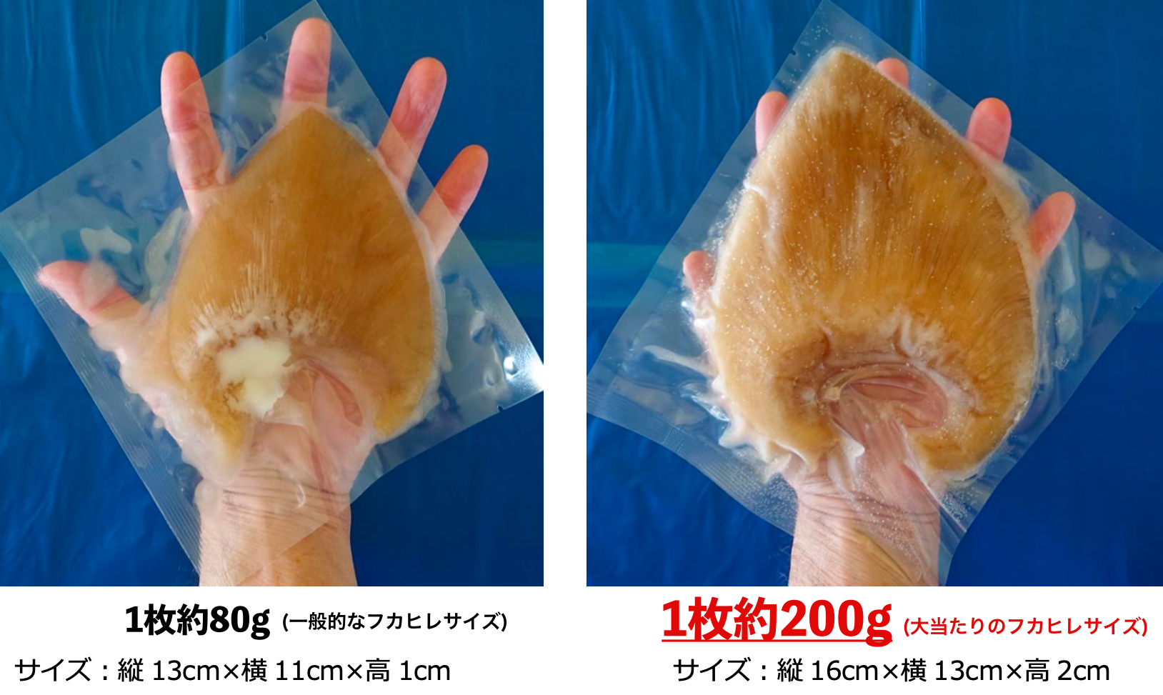手のひらサイズの大きな気仙沼産・ヨシキリザメ(約18,000円相当)を使用。