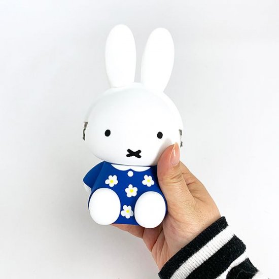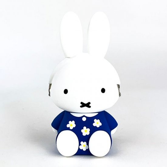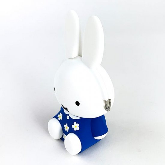置物のようなお座りポーズのミッフィー。お出かけなどに着ているお気に入りの青い花柄ワンピがお似合いです。