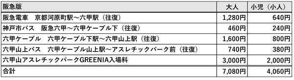 阪急版: 阪急全駅(神戸高速線を除く。)から阪急六甲駅までの往復乗車及び下記の共通区間