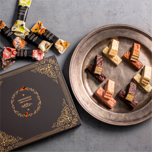フルーツやコーヒーの味わいとサクサクパイの食感を楽しむミルフィーユ。