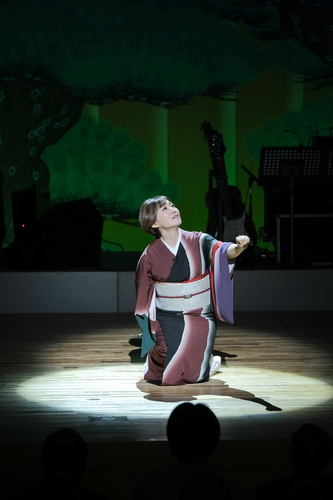 3月28日、歌手・山口瑠美にとって、第二の故郷である東京・三鷹にある三鷹市芸術文化センターで開催された「居酒屋瑠美〜三鷹で一杯いかが〜」は、恒例の割烹着姿の一人芝居で幕を開けた。