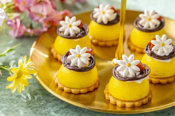 約15種類のセイボリーには、春の訪れを感じさせる魅力的なラインナップをご用意しています。 お口直しにぴったりな、さっぱりとした苺風味の「ドライストロベリーとシーフードのセビーチェ」、チェダーチーズとともに味わう「季節野菜のラクレット風」、ほのかにガーリックが香る「菜の花とシラスのパスタ」など、季節感あふれるメニューをお楽しみいただけます。 そのほかにも、あさりとカラフルなあられを添えた「海鮮中華スープ カラフルあられ添え」、お好みではちみつをかけて楽しむ「ゴルゴンゾーラのホットサンド はちみつ添え」、箱庭のような見た目が可愛らしい「スモークサーモンとカッテージチーズの箱庭風抹茶ちらし寿司」など、多彩なセイボリーをお好きなだけお召し上がりください。