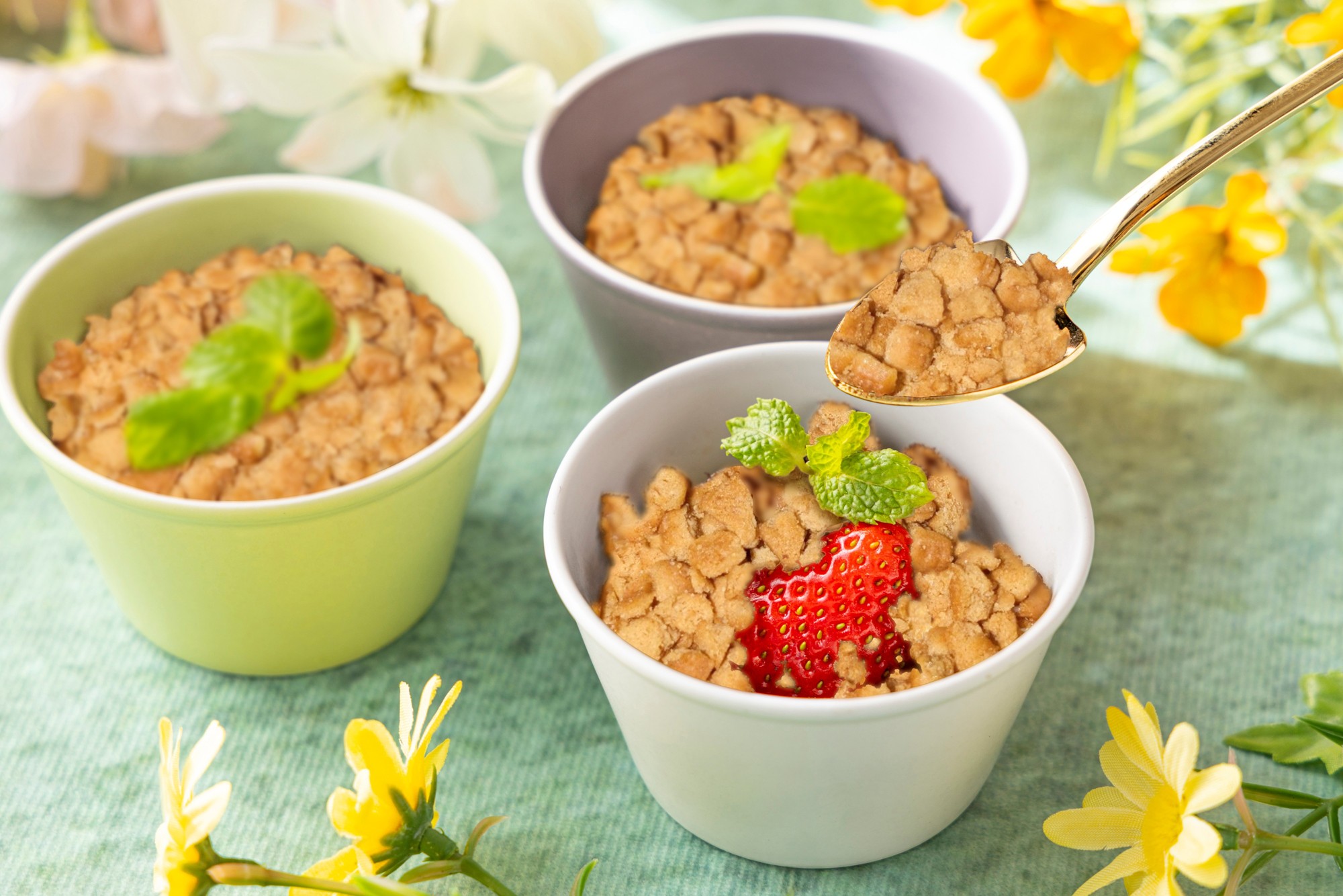 妖精が育てる鉢植えをモチーフにした、なめらかな食感の「フェアリーガーデン チョコレートパンナコッタ」をご用意しました。ザクザクとしたクッキーをスプーンで掘ると、妖精が隠したフレッシュ苺、苺のアーモンドチョコレート、苺の生チョコレートのいずれかがチョコレートパンナコッタとともに現れます。どれが出てくるかは運次第。妖精の遊び心を表現した、ワクワク感あふれるスイーツです。