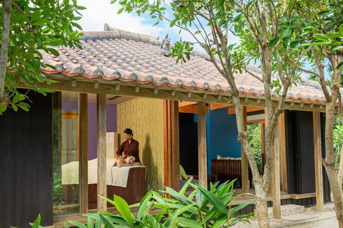 自然豊かな空間でスパトリートメントを受け、日ごろのストレスや忙しさから解放されます。トリートメントメニューは、美しい海の恩恵を体感できる「海の恵み いんぬふぁーすん」。海藻を含む発熱性のパックを背中に施し、じんわりと身体を温め緊張を和らげるトリートメントです。また、オイルは月桃やシークワーサーなど、島素材の精油を使用したブレンドオイルを用います。深く息を吸い込むたびに爽やかな心地よい香りが身体の隅々に行きわたり、気分転換ができます。