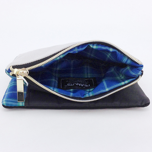 こちらがその、マスクケースです。一見普通のポーチのようですが、マスクに合わせて横幅の広いフラットなフォルムなんです。中央のスヌーピーもかわいくて、下面の花柄もキュートですよね♪