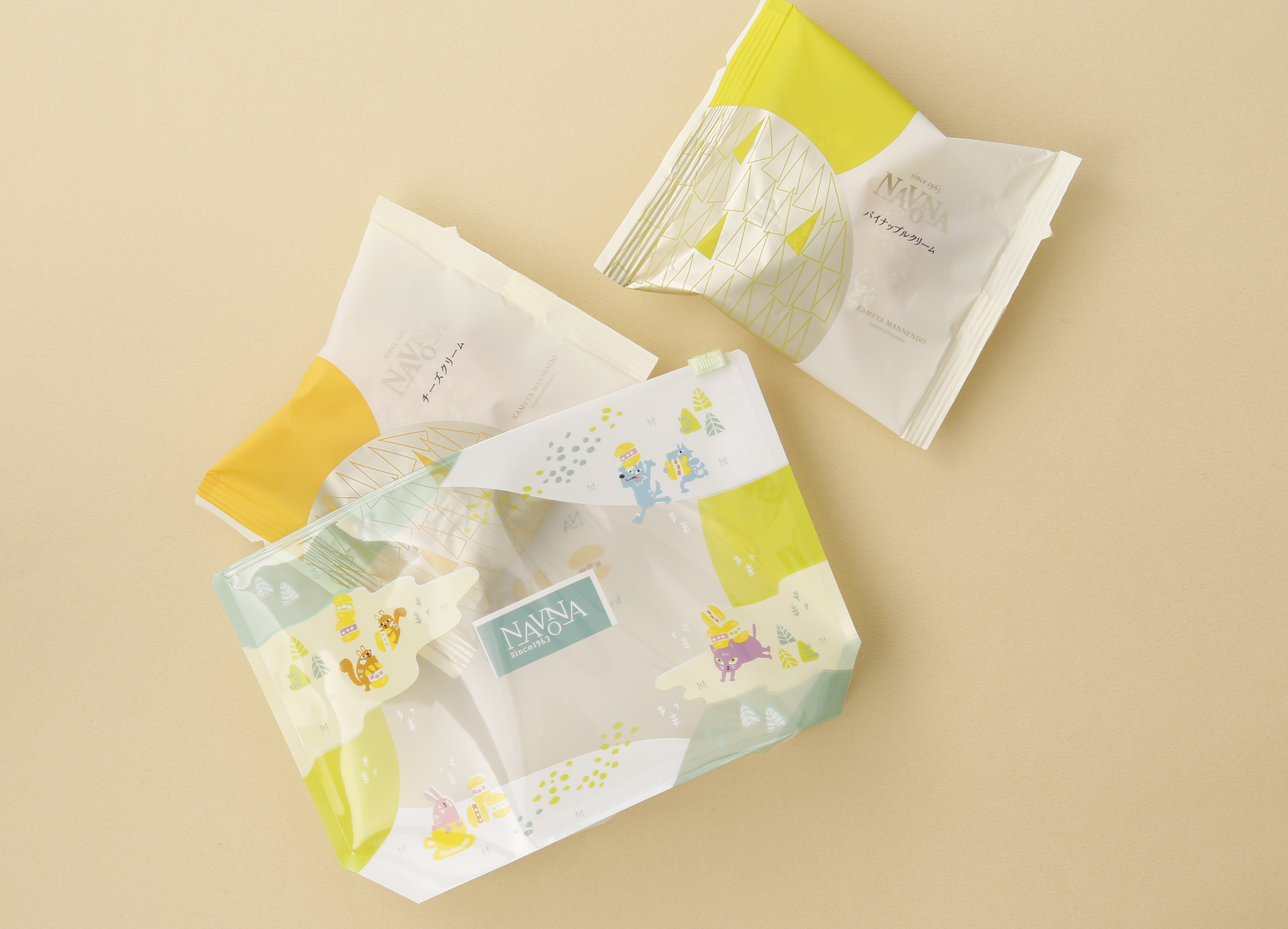 ナボナ60周年を機に、ナボナをもっと身近に感じていただきたいとの思いで、ナボナ2個とセットでオリジナルデザインのクリアポーチを販売します。