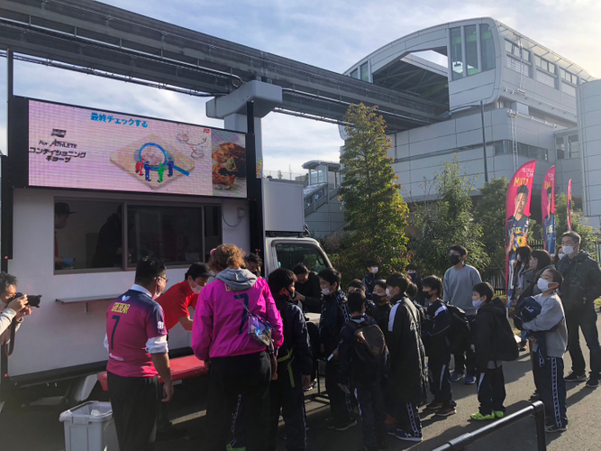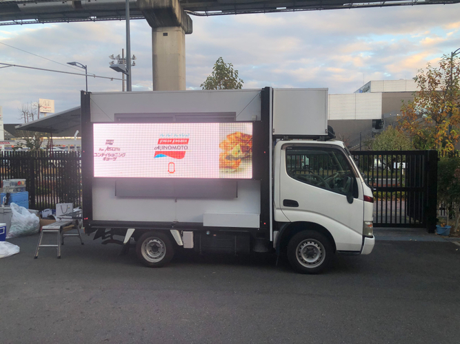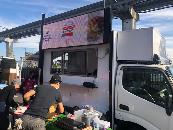デジタルサイネージ搭載キッチンカー『エンタカー』が味の素の新商品「For ATHLETE®」のサンプリングブースとして活用されました