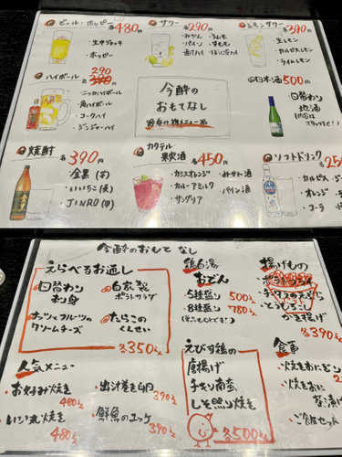 おでん食べ放題500円、唐揚げ食べ放題500円、ビール日本酒飲み放題1500円という、開業からお客様から心配されるレベルの放題サービスを提供しています。初日から大盛況となりました。