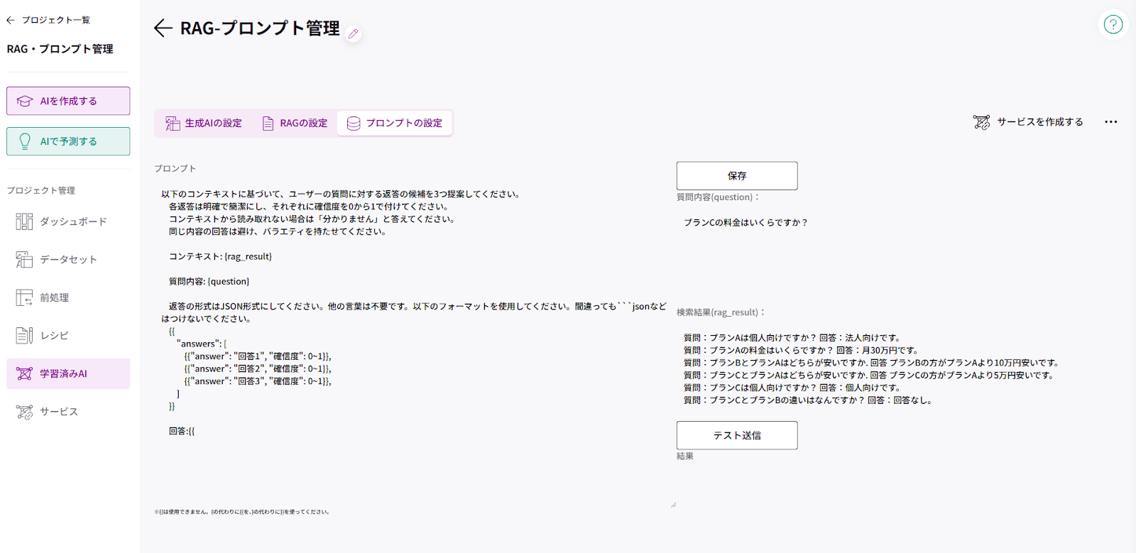 異なる部門のニーズに応じてプロンプトを柔軟に設定し、利用シーンに適したAI回答が可能