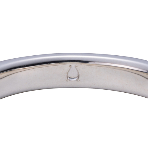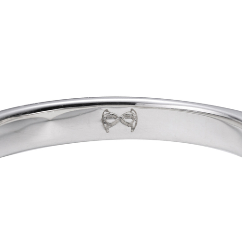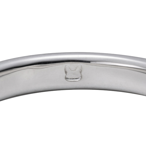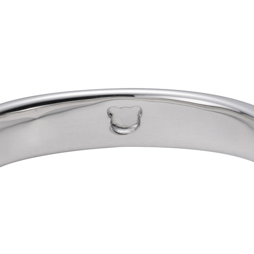 耳と胸元のモチーフを取り込んだ平打ちフォルムの表面に、イメージカラーストーンをセット。内側には猫のぬいぐるみの形を刻印しました。