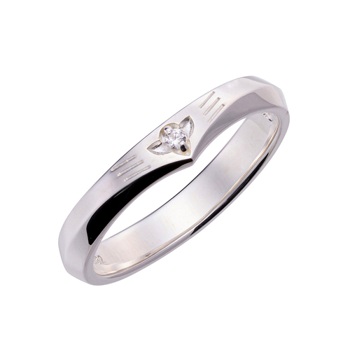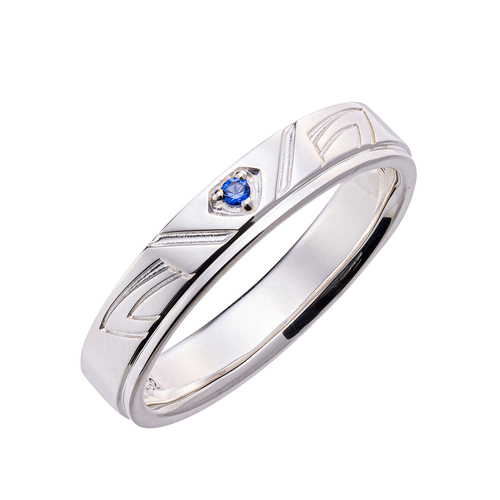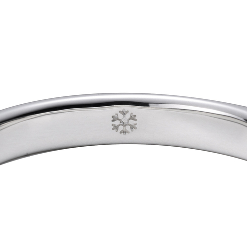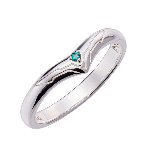 イメージカラーストーンをセットした甲丸フォルムの表面には、スーツの背中のモチーフを取り込み、内側には雪の結晶の形を刻印を施しました。