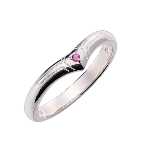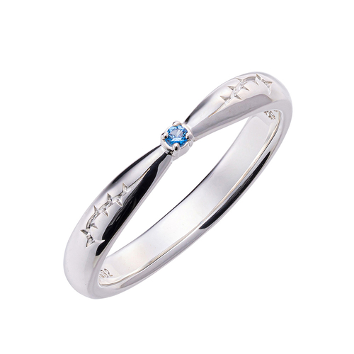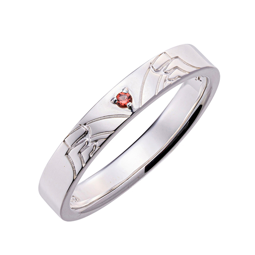 背中の手裏剣モチーフを取り込んだ段差のある平打ちフォルムの表面に、イメージカラーストーンをセット。内側には手裏剣の形を刻印しました。