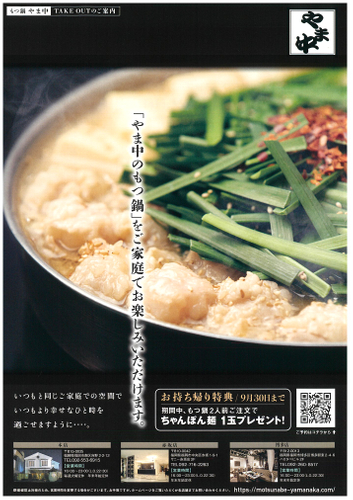 おうち時間にやま中のもつ鍋をご賞味ください☆