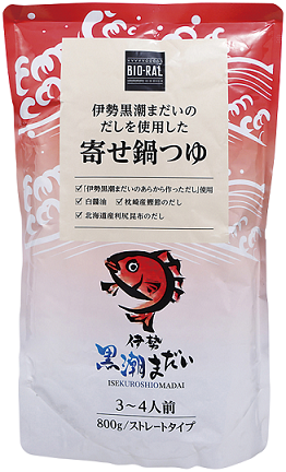 「伊勢黒潮まだいのだしで味わう鍋」で使用しているスープは、ライフオリジナルの「BIO-RAL 伊勢黒潮まだいのだしを使用した寄せ鍋つゆ」。加工センターで廃棄されていた頭や骨などを粉末にし、そのエキスを使用して作ったアップサイクル商品です。