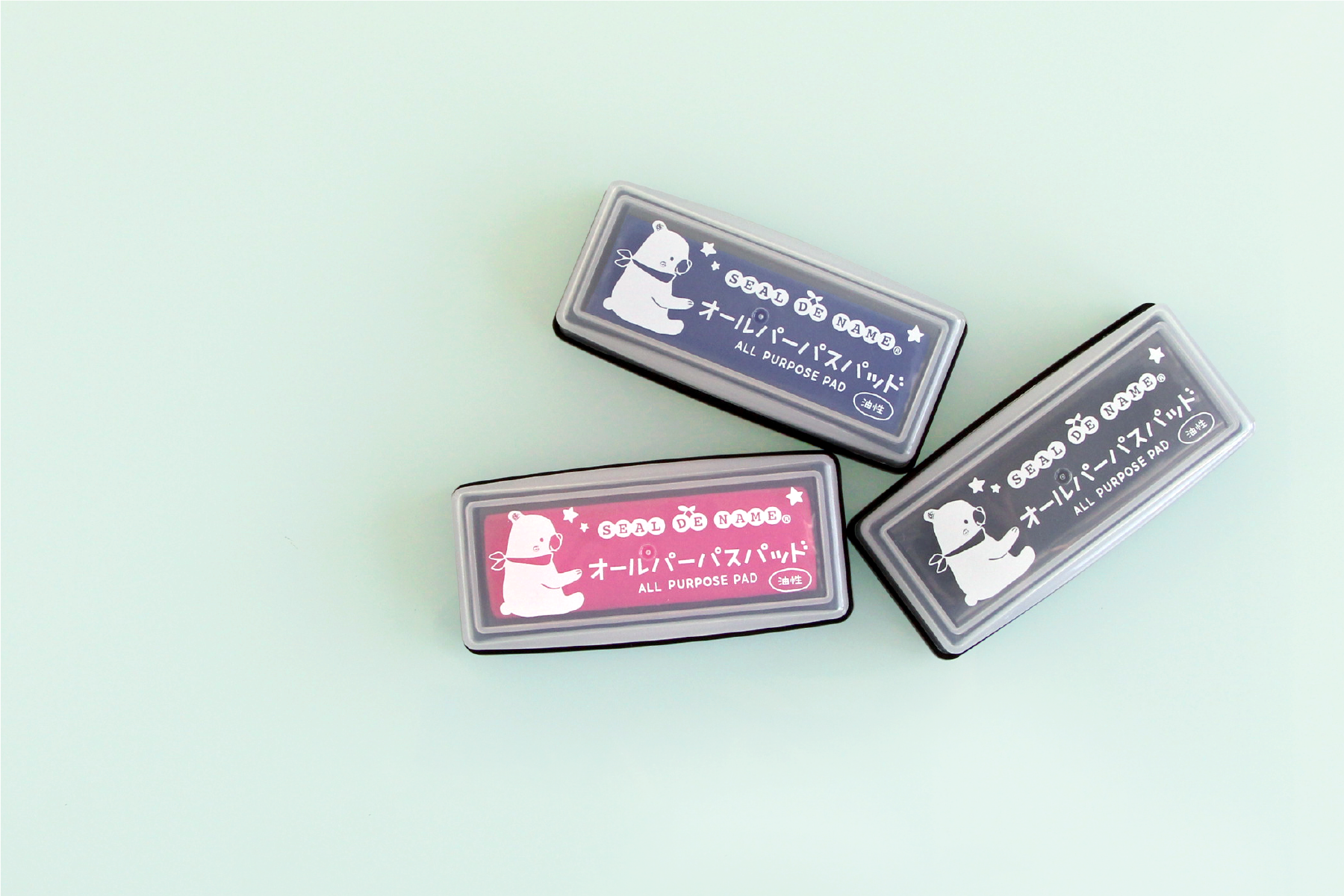 付属のインク台は速乾性の顔料系インクなので、朝に「あ、オムツが足りない!」となっても、ポンッと押してすぐに持っていく事ができます。油性マジックのような感覚でご使用いただけるので、おむつだけでなく、紙・金属・プラスチックにも押すことができます。また、お好みに合わせて3色からお選びいただけます。