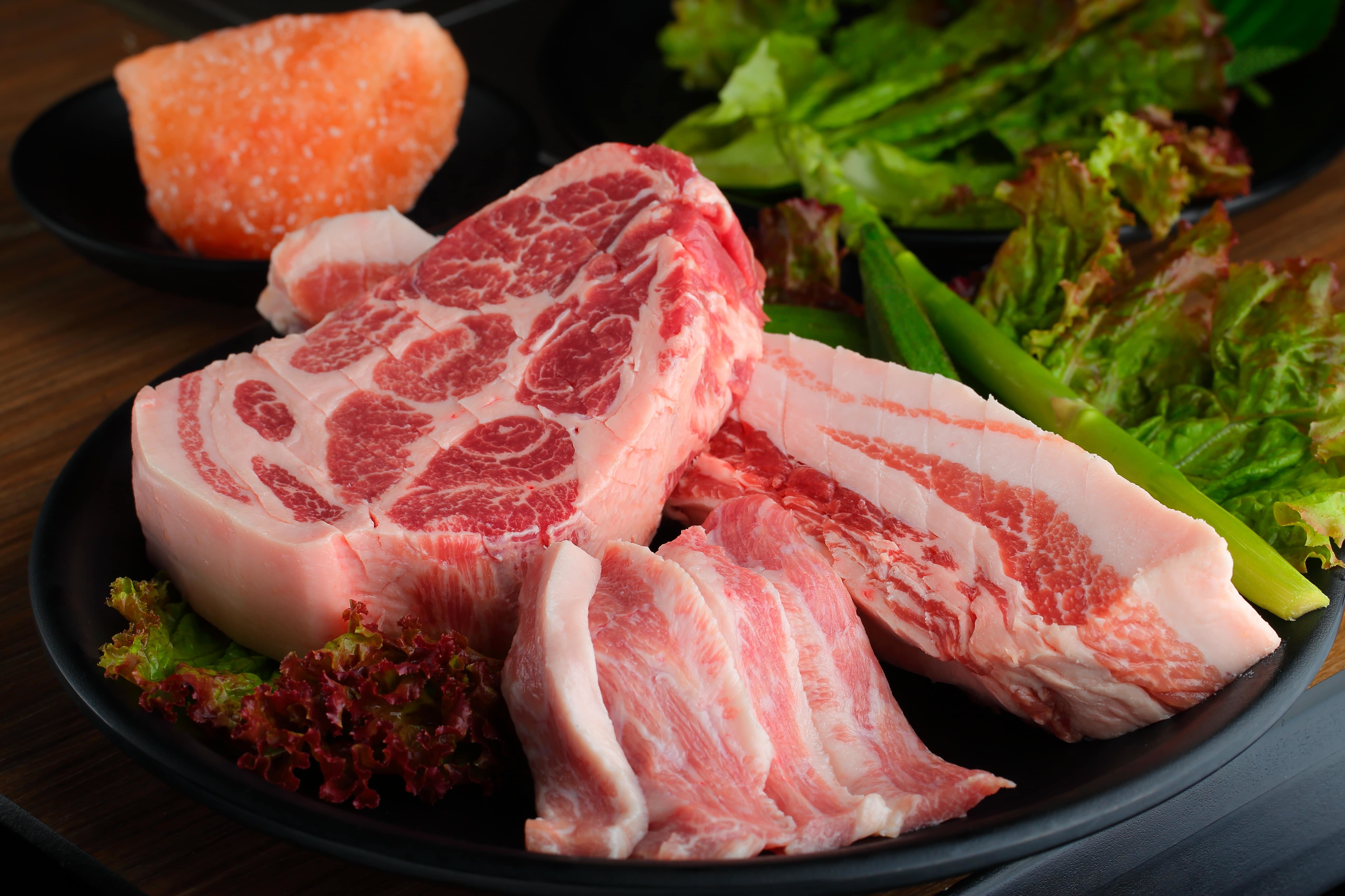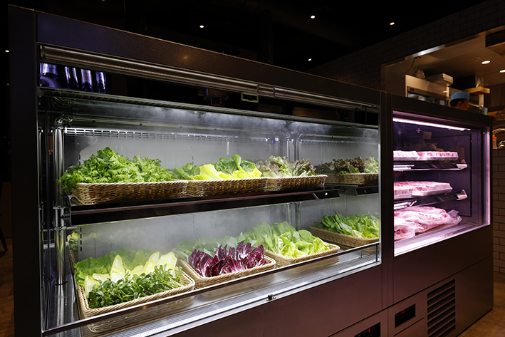 東京食肉市場銘柄豚協会指定一号『岩中豚』を使用し、お肉料理を最適な状態で提供したいという店主のこだわりで、研究を重ねた結果、肉汁を閉じ込めるのに最適な「厚さ3.5cm」に辿り着きました。岩中豚を使用した熟成サムギョプサルは、店内にある熟成室で最適な温度・湿度を保ち、ブランド豚「岩中豚」を14日間熟成します。店主のこだわりは熟成に留まらず、鉄板の温度管理を徹底し、必ず220℃以上でお焼きしてご提供しています。スタッフが慣れた手つきで焼き上げる技など、随所に見える当店のこだわりをご堪能ください。