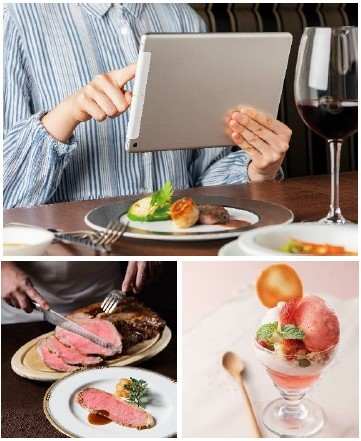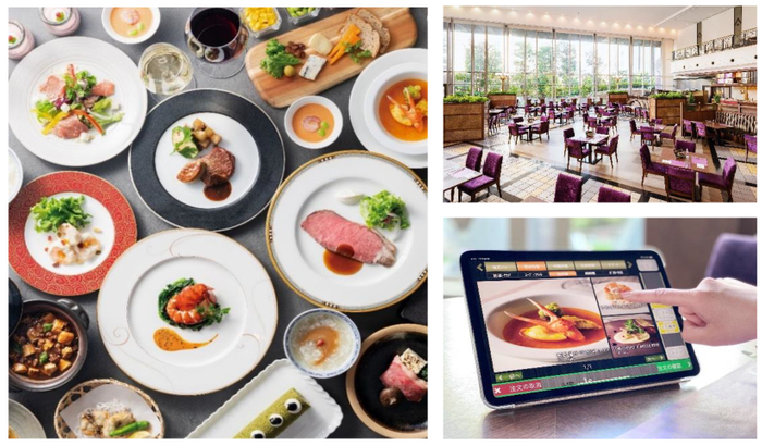 営業の再開にあたり、これまでは、フランス料理を中心にご用意しておりましたが、日本料理と中国料理を新たに加えて“和洋中が融合した、あなただけのフルコース”が仕立てられるようにするほか、お客様がお料理を取りに行く従来の形式を改め、各テーブルに設置したタブレット端末からご注文いただいたお料理を、スタッフがお席までお届けするフルオーダー式の提供方法に変更します。また、これまで以上に安心・安全にお食事をお楽しみいただけるよう、従業員の健康管理の徹底はもちろんのこと、テーブルや椅子などの什器をはじめ、壁や窓など店内全体に抗菌・抗ウイルス加工を実施しました。