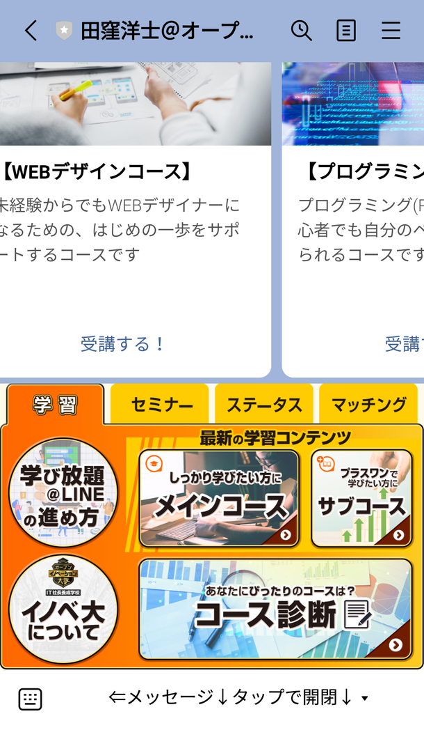 受講方法: オープンイノベーション大学のLINEからご案内します