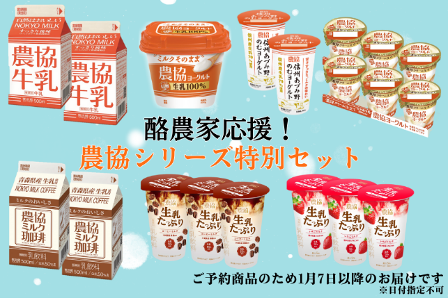 お馴染みの牛乳・乳製品に加えて、「農協シリーズの乳製品セット」などの特別商品を「お客様送料負担なし」で販売します。