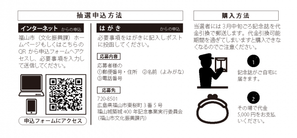 ・記念誌の申込の抽選・発送は福山城築城400年記念事業実行委員会の事務局である文化振興課が行います。