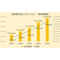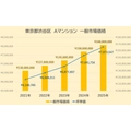 2021年は10,330 万円(@487万円)でしたが、翌2022年は11,040万円(@521万円)、2023年は11,780万円(@556万円)、2024年は12,860万円(@607万円)、2025年は13,690万円(@646万円)と大幅に上昇していることがわかります。