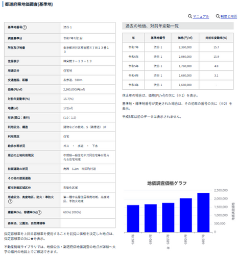 ※エリア:基準地価(価格)の変動率が高かった東京都内の基準地(渋谷-1)周辺のマンション