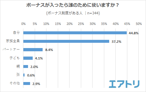 「自分」と回答した人は44.8%で最多回答となり、「家族」(37.2%)、「パートナー」(8.4%)と続きました。