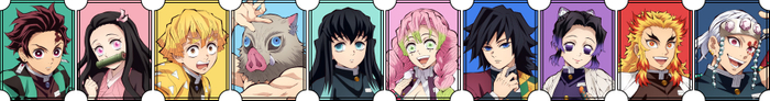 (竈門炭治郎・竈門禰󠄀豆子・我妻善逸・嘴平伊之助・冨岡義勇・時透無一郎・煉獄杏寿郎・胡蝶しのぶ・甘露寺蜜璃・宇髄天元)