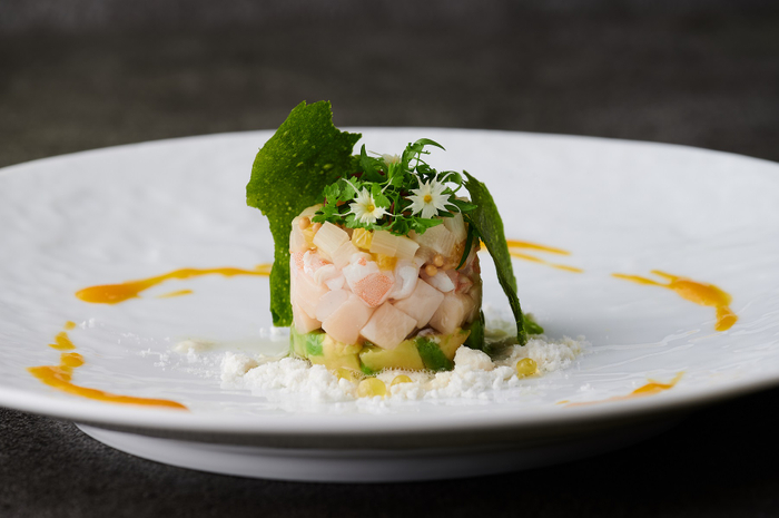 ホワイトアスパラとカリフラワーのラビゴット 柑橘のヴィネグレット