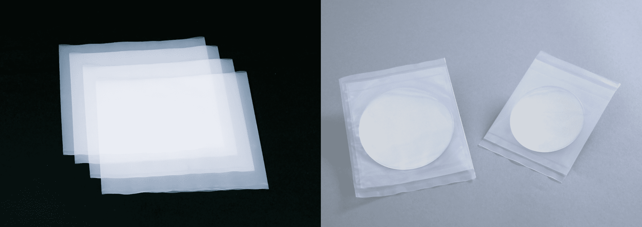 袋内のパーティクル数及びアウトガス量を保証した究極の無添加のクリーンフィルム、バッグです。半導体分野において半導体製造装置に使われる装置部品や交換用パーツの一次包装用フィルム袋として幅広く採用されています。