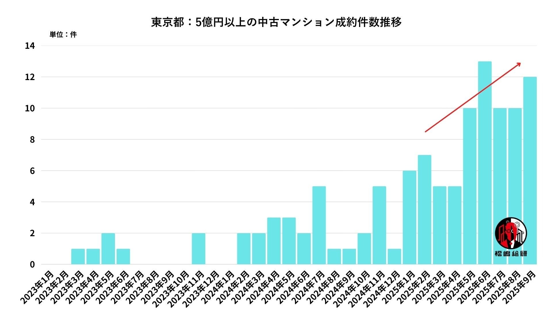 次に、5億円以上の超高額帯を見てみましょう。この価格帯は、いわゆる「富裕層マーケット」に該当します。