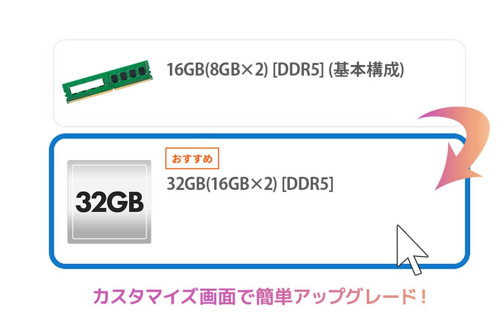 【BTO標準構成】各種カスタマイズが可能な「BTO(Build to Order=受注後生産方式)」に対応しています。
