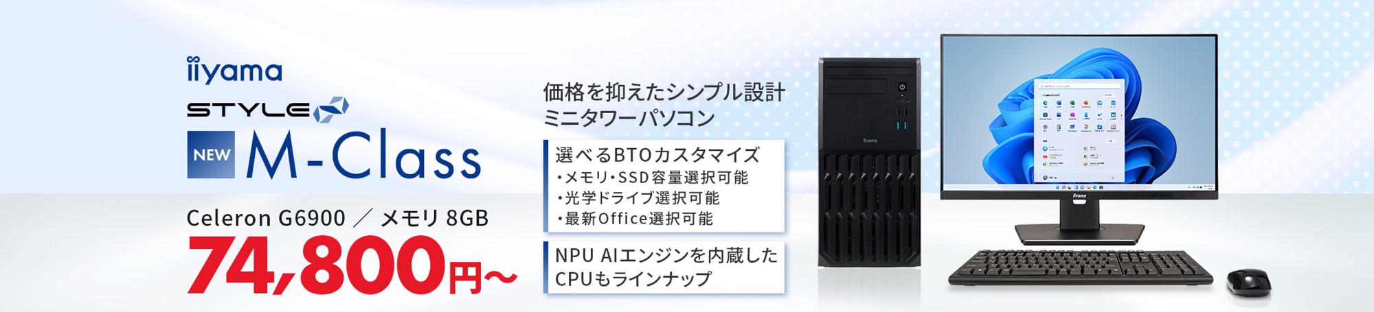 STYLE∞ M-Classは、日常使いに最適なバランスの取れた性能を備えた、スタンダードなミニタワーデスクトップパソコンです。