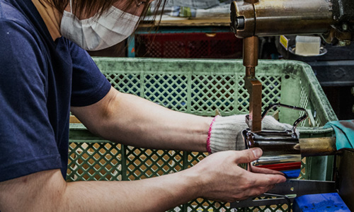 ハンドドリップで注ぐ際、一般的なやかんやポットでも淹れることはできますが、多めのお湯が勢いよく出てしまうので少しづつ注ぐのが難しく、せっかくのコーヒー豆の味を引き出せません。当社ではこの道 40年の燕三条職人とコラボ。史上初の内径3.4mm、超極細ノズル(注ぎ口)を持つコーヒードリップポットの開発に成功しました。