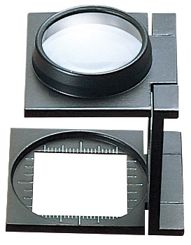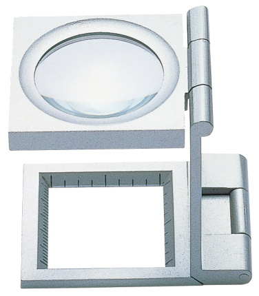 シマミ(縞見)ルーペとは繊維織物の糸数を測定するためのルーペです。目盛が付いているので、布地のチェックのほか、印刷物の仕上げ確認などの用途で使えます。