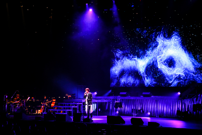 その後、「浮気もの、汝の名は女」(『天保十二年のシェイクスピア』)、「ゲームの始まり」(『デスノート』)と、これまで出演してきた作品から楽曲を披露。その後、テレビアニメ『クラシカロイド』から、「六弦の怪物 ~クロイツェルより~」を歌った。さらに2022年に再演が行われることが発表されたばかりの『笑う男 The Eternal Love -永遠の愛-』から「笑う男」「目を開いて」を、『モーツァルト!』より「星から降る金」、『エリザベート』から「私だけに」を披露する。『モーツァルト!』への出演経験はないが、「星から降る金」はアルバム『Piece』にも収録されている、思い入れのあるナンバーだ。