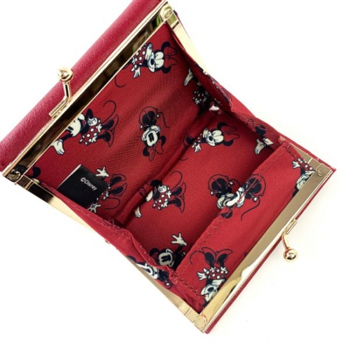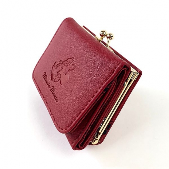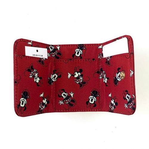 落ち着いたレッドが大人っぽい、ミニーの三つ折り財布です。