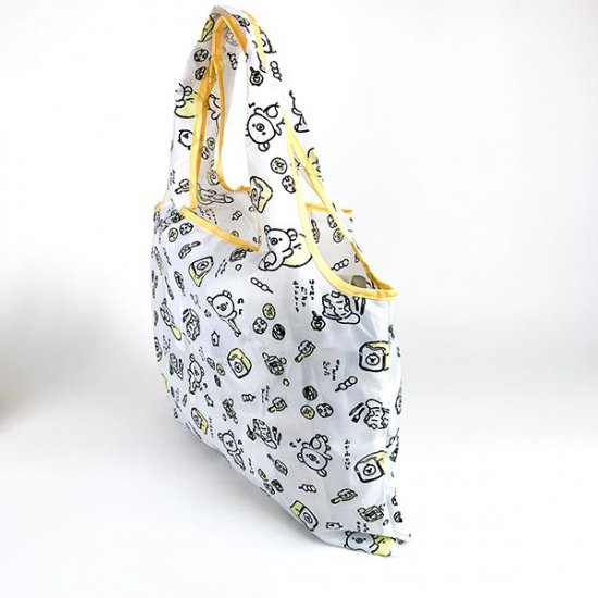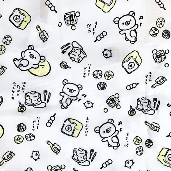 リラックマとスイーツの総柄になった、シンプルなデザインのエコバッグです。縁取りがソフトなイエローカラーで、アクセントになっています。