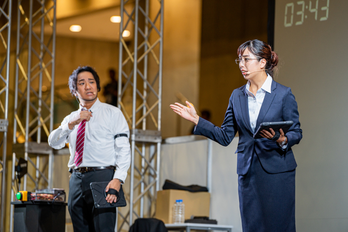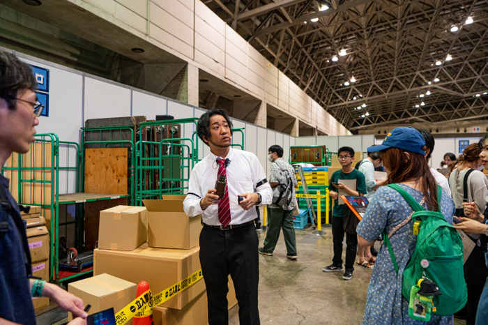 謎解きを通して参加者がまるで“物語の登場人物”になったかのような体験ができる「リアル脱出ゲーム」。新作『リアル脱出ゲームTV~The Live~』は参加者が捜査員として「2代目謎男」が仕掛けた謎を、舞台上の捜査員と協力して解決を目指す体験型ゲーム・イベントです。本イベントは、2024年8月23日(金)~25日(日)の期間中、幕張メッセで行われたリアル脱出ゲームの祭典「リアル脱出ゲームフェスティバル」にて先行開催され、参加者からは「その場で事件が起こっている演出に没入感があった」や「閃いたときには鳥肌が立った」など絶賛の声をたくさん頂いているイベントです。