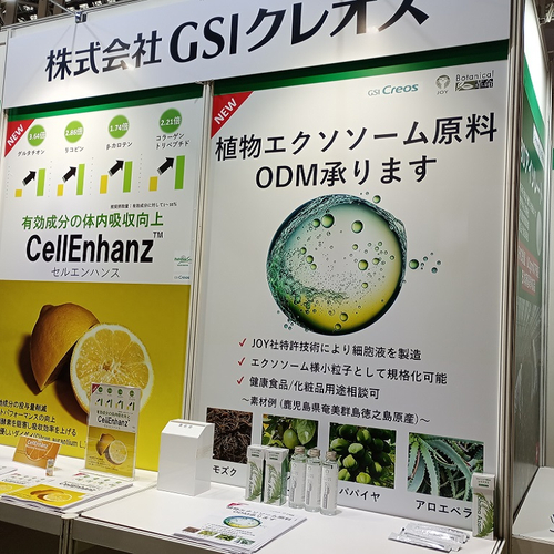 植物由来のエクソソーム原料および商品の開発・販売を手がける株式会社ジャパン・オーガニック・イールド(J.O.Y. 東京都文京区 代表取締役丹藤信平(たんとうしんぺい)は、10月23-25日にお台場の東京ビッグサイトで開催された食品開発展2024において、原料販売のパートナー企業であるGSIクレオス様のブースにおいて、シマアザミ細胞液およびODMについて出展いたしました。